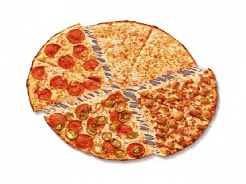 Pepperoni, plain cheese, spicy jalapeños, and savory sausage fill each quarter, offering a crowd-pleasing mix of flavors in every slice.